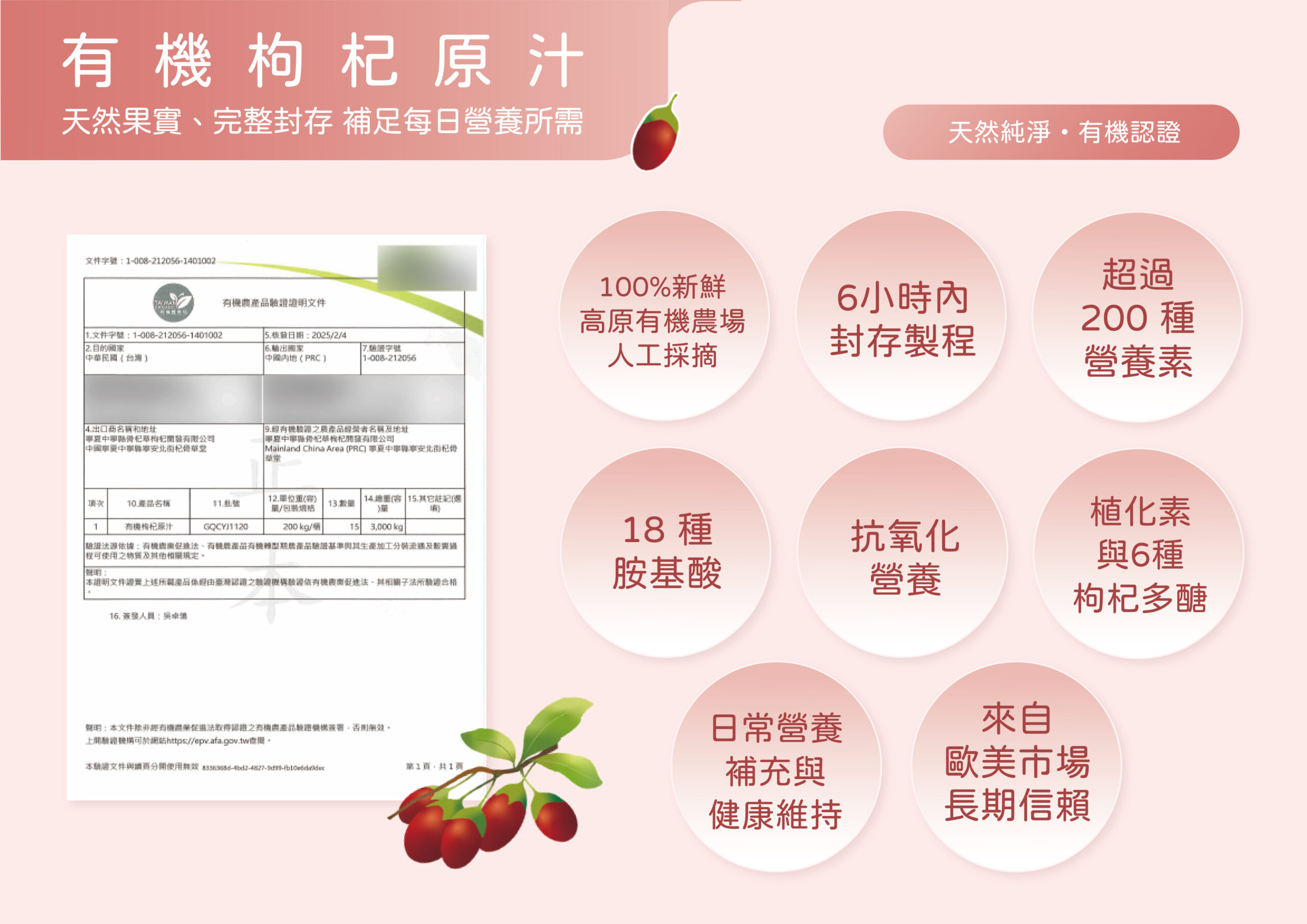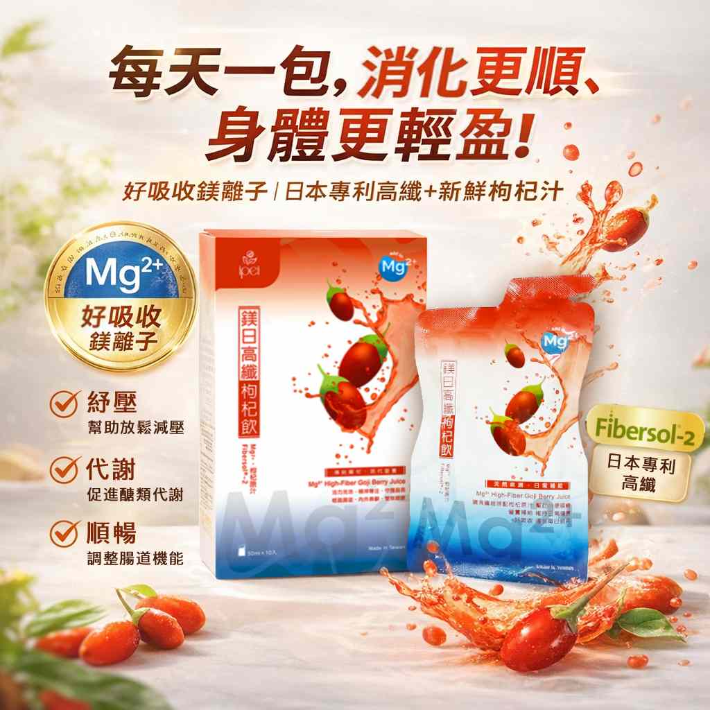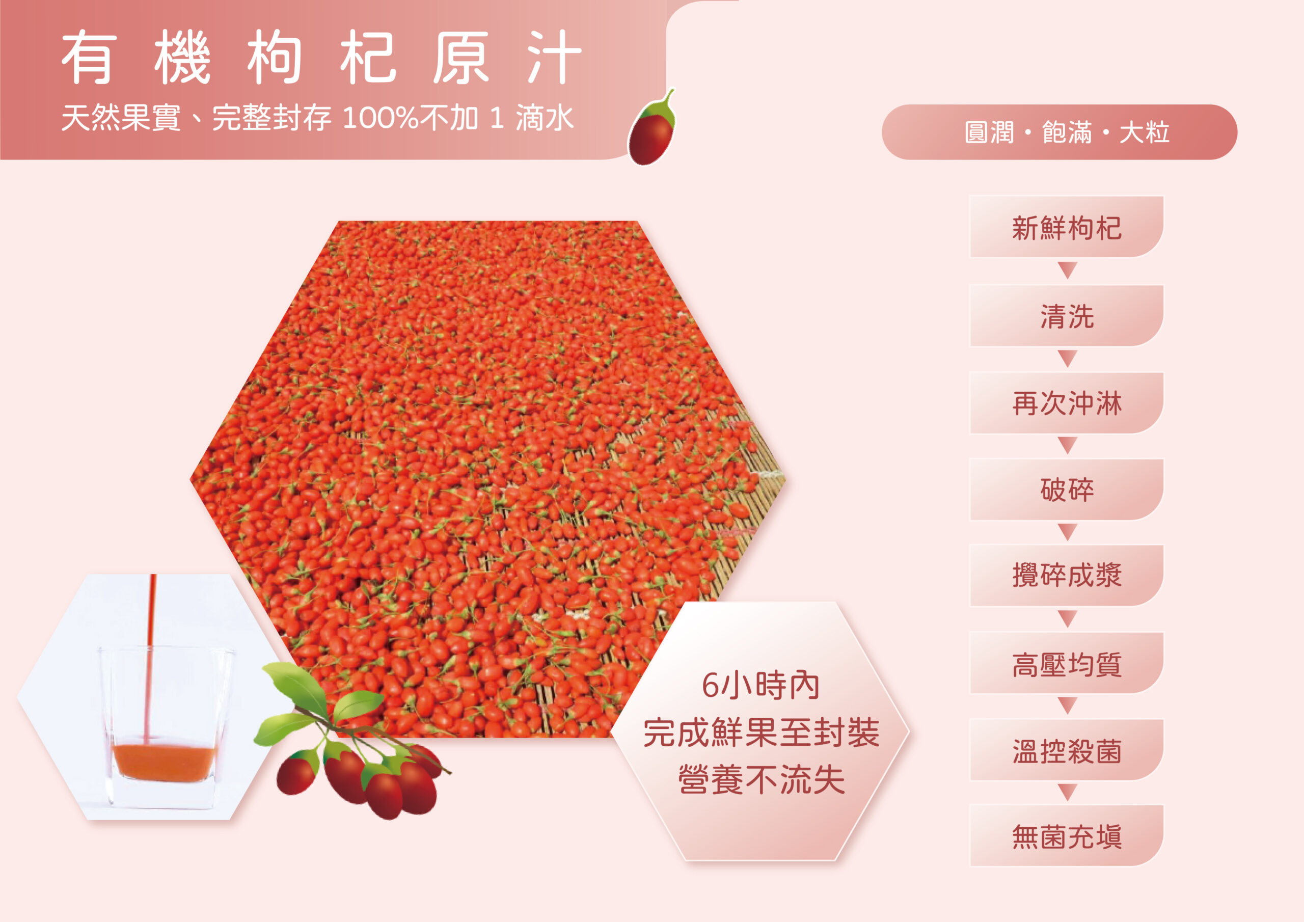 膳食纖維搭配枸杞原汁,幫助排便順暢。